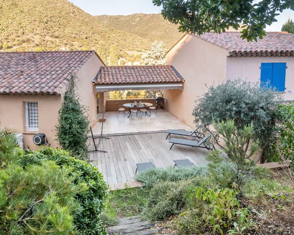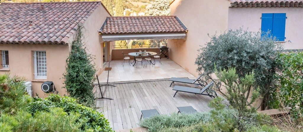 Il giardino terrazzato privato, completamente recintato, offre uno spazio esterno sereno e sicuro ad uso esclusivo degli ospiti. L'assetto terrazzato della residenza e gli spazi verdi circostanti seguono i naturali contorni del paesaggio, creando un ambiente armonioso e visivamente gradevole. Le aree esterne sono ideali per rilassarsi al sole della Provenza, mentre la vicinanza al mare aggiunge un'atmosfera costiera rinfrescante a ogni momento trascorso all'aperto.