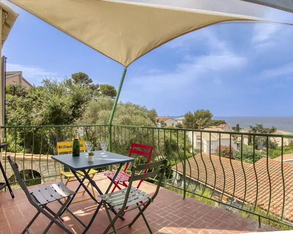 L'appartamento dispone di 2 terrazze di 10 metri quadrati ciascuna, una esposta a sud-ovest e una a nord-est, entrambe con vista sul mare. Il parcheggio è disponibile in loco all'interno di un'area recintata con capienza per 2 automobili. Il televisore presente nella proprietà trasmette esclusivamente canali in lingua francese. Un rilevatore di fumo è installato nell'appartamento. La proprietà è offerta da un privato secondo l'art. 155, comma IV del CGI, riferimento 831290294975.