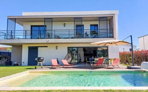 Questa moderna e bellissima villa "Villa La Roquette sur Siagne" è una proprietà indipendente su due piani costruita nel 2023, situata in una zona residenziale di ville vicino a La Roquette-sur-siagne, in Francia. Vanta un giardino recintato ben curato di 400 metri quadrati e una piscina riscaldata (8 x 4 metri, profondità 120 - 150 cm) con copertura a scorrimento, disponibile stagionalmente dal 1° aprile al 30 ottobre. La villa offre un comodo parcheggio fino a 3 auto ed è dotata di un sistema di allarme antifurto e internet WiFi, rendendola un'ideale casa vacanza per chi cerca un soggiorno di lusso.