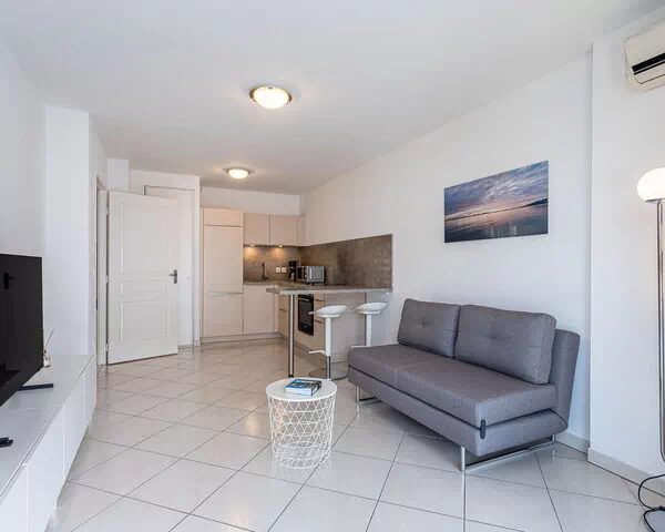 L'alloggio che stai considerando è un appartamento di 2 stanze con un'area di 45 metri quadrati, situato al 1° piano. Offre uno spazioso e luminoso spazio abitativo, con arredi confortevoli e belli. Il soggiorno/sala da pranzo misura 21 metri quadrati ed è dotato di un divano letto matrimoniale largo 140 cm e lungo 190 cm, una TV a schermo piatto e l'aria condizionata. Inoltre, c'è una stanza di 11 metri quadrati con un letto matrimoniale di 2 x 90 cm e 200 cm di lunghezza.