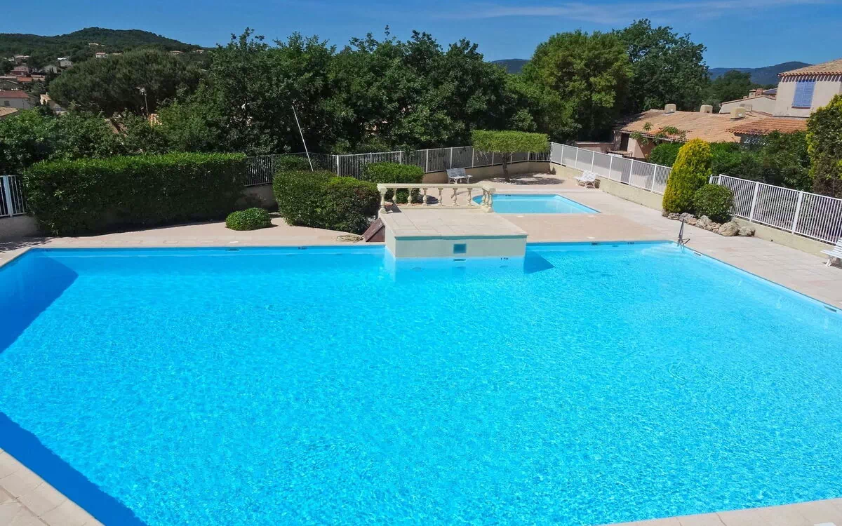 La piscina condivisa misura 20 x 12 metri con profondità da 120 a 240 cm ed è disponibile dal 1° maggio al 30 settembre. Lo spazio esterno circostante offre ampio spazio per il relax e per godere dell'ambiente naturale tranquillo che caratterizza questa zona del Var.