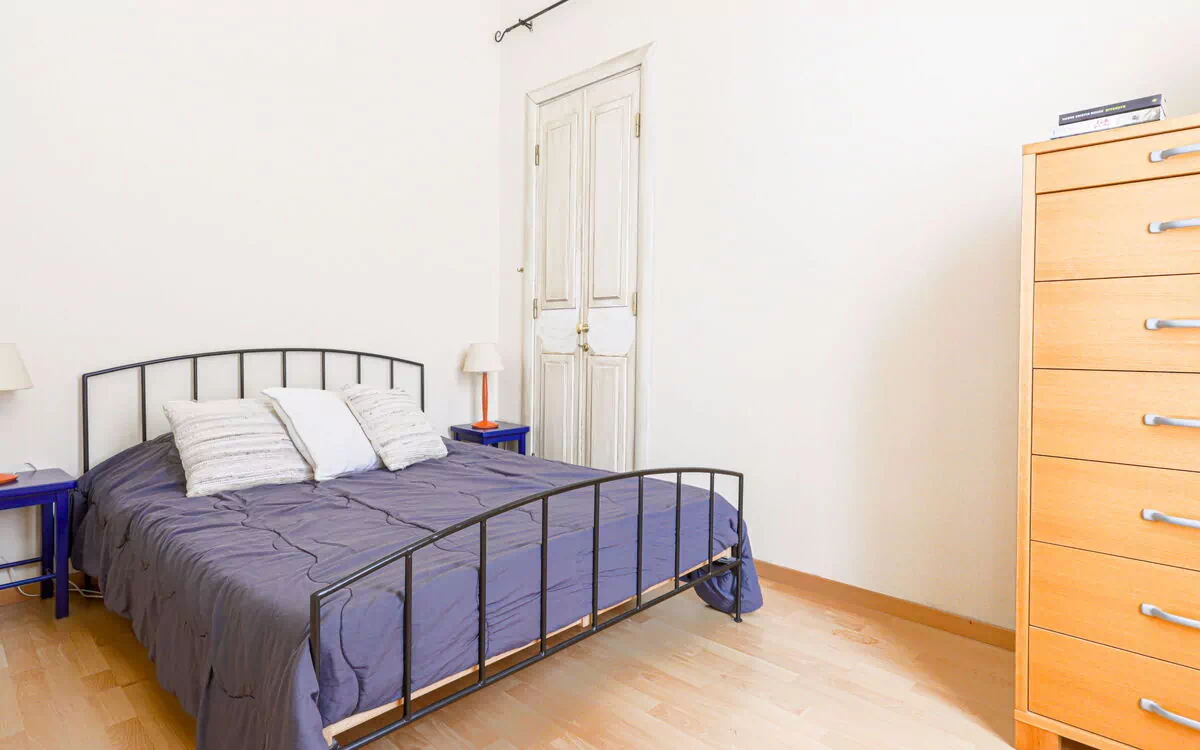 Dit vakantieappartement heeft een oppervlakte van 67 m² en is gelegen op de eerste verdieping. Het biedt plaats aan maximaal 4 gasten verdeeld over 2 slaapruimten en 1 badkamer. De woon- en eetkamer vormt de centrale ruimte van het appartement en is voorzien van een flatscreentelevisie. De eerste slaapkamer is een afgesloten ruimte met raam op de binnenplaats, ingericht met 1 Frans bed van 140 cm breed en 190 cm lang. De tweede slaapruimte is een open galerij van 17 m² met een plafondhoogte van 150 cm, waarin zich 1 eenpersoonsbed van 90 cm breed en 190 cm lang en 1 slaapbank van 140 cm breed en 190 cm lang bevinden. Deze open galerij fungeert als slaapruimte in plaats van een volledig afgesloten tweede slaapkamer. De keuken is open opgezet en beschikt over 2 kookplaten, een oven en een elektrisch koffiezetapparaat. De badkamer is voorzien van een bad, douche, bidet en toilet.