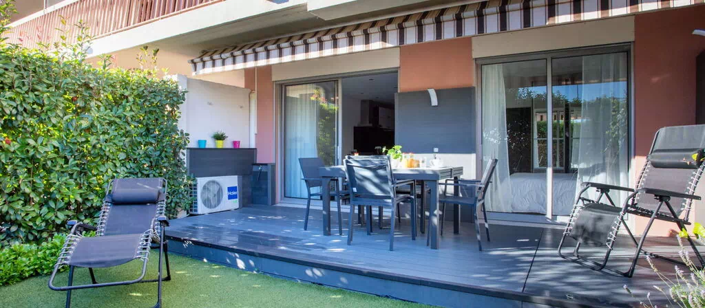 De zuidelijke oriëntatie van "Le Marbeau" zorgt ervoor dat de buitenruimtes gedurende de dag volop zonlicht ontvangen. De tuin rond de accommodatie biedt een aangename groene plek waar gasten kunnen genieten van het klimaat van de Franse Rivièra in een rustige en privéomgeving.