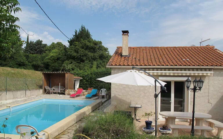 Het vakantiehuis "Bleue" ligt in een rustige woonwijk van Saint-paul-en-forêt in Frankrijk, slechts 300 meter van het dorpscentrum. Het huis staat op een volledig omheind privéterrein van 1.000 vierkante meter en biedt een ideale combinatie van privacy en bereikbaarheid. Het zwembad meet 8 x 4 meter met een diepte van 110 tot 200 centimeter en is het hele jaar beschikbaar. Het terrein biedt voldoende ruimte voor ontspanning en buitenactiviteiten.
