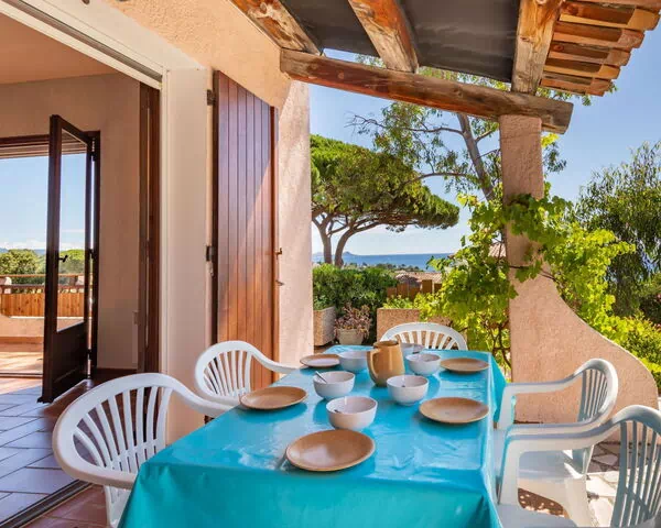 Dit vakantiehuis heeft een oppervlakte van 120 m² verdeeld over één verdieping en biedt plaats aan maximaal 6 gasten in 3 slaapkamers en 2 badkamers. Het pand is oost-gericht en ontvangt gedurende de dag natuurlijk licht. De woon- en eetkamer vormt de centrale ruimte, eenvoudig en comfortabel ingericht met een flatscreen-satelliet-televisie en directe toegang tot het terras van 50 m². De keuken is afzonderlijk en volledig uitgerust met eigen uitgang naar het terras. Twee slaapkamers zijn elk voorzien van twee eenpersoonsbedden van 90 cm breed en 190 cm lang, beide met airconditioning. De derde slaapkamer beschikt over een Frans bed van 160 cm breed en 190 cm lang, airconditioning en een eigen badkamer met toilet en directe toegang tot het terras. Een gedeelde badkamer en een afzonderlijk toilet bedienen de overige slaapkamers. Het terras is ingericht met terrasmeubilair en twee ligbedden en biedt uitzicht op zee.