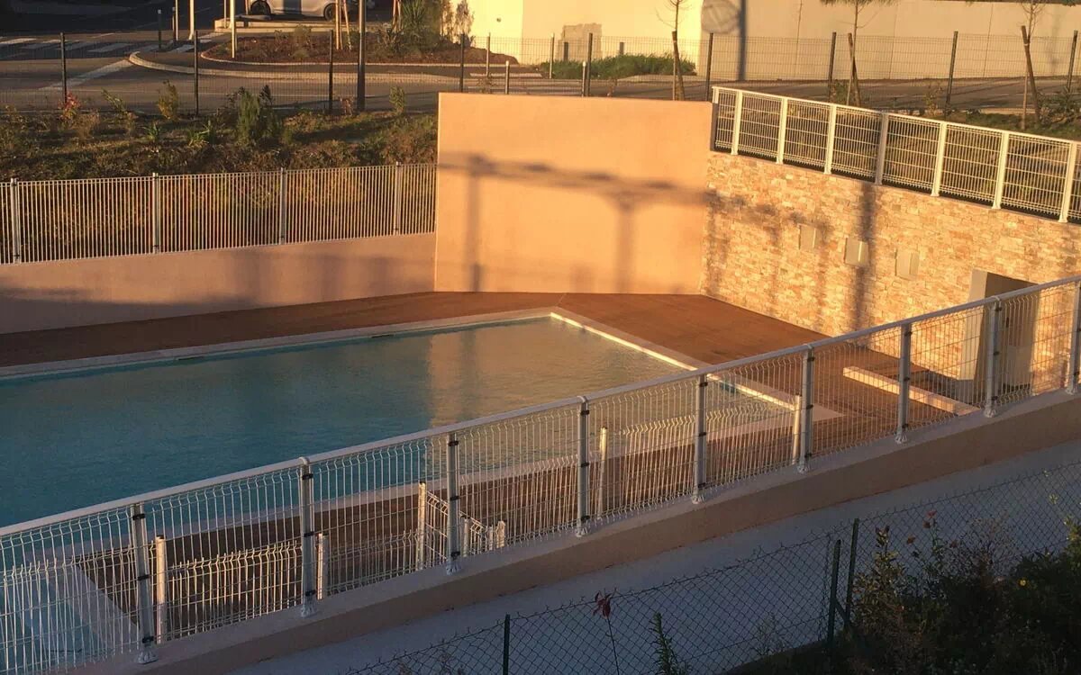 De gedeelde tuin is zorgvuldig onderhouden en biedt een rustige plek om te ontspannen in het warme Provençaalse klimaat. Het gezamenlijke zwembad meet 4 x 17 meter met een diepte van 85 tot 150 cm; het is omheind voor veiligheid en beschikt over een interne trap voor gemakkelijke toegang. Het zwembad is beschikbaar van 1 juni tot 30 september.