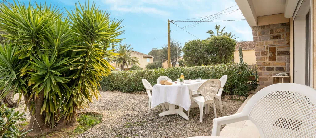 De buitenruimtes nodigen uit tot ontspanning in het warme mediterrane klimaat. Een privéplaats biedt een beschut en intiem kader voor rust na een dag verkenning. Het terras is voorzien van tuinmeubilair en schept een uitnodigende ruimte voor buitendinen, ochtendkoffie of gewoon genieten van de zon. De omringende groenery draagt bij aan de natuurlijke charme van de buitenomgeving.