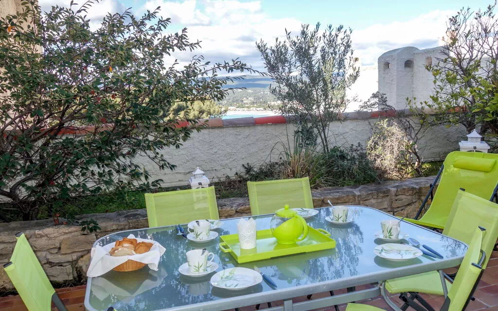 La Madrague is een vakantieappartement in de residentiële wijk "Hameau la Madrague" in Saint-Cyr-sur-Mer, Frankrijk, gelegen op een verhoogde positie slechts 200 meter van zee. Het ligt in een rustig woondomein waar autoverkeer niet is toegestaan, wat zorgt voor een veilige en vredige omgeving. Het appartement beschikt over een eigen tuin die een aangenaam privé buitenruimte biedt om van het Middellandse-Zeeëse klimaat te genieten. De toegang tot het appartement verloopt via lange trappen.
