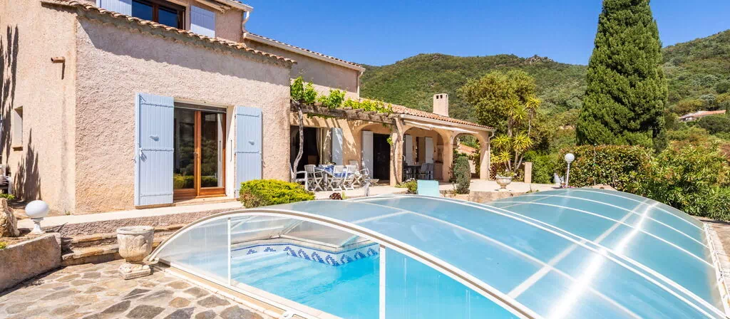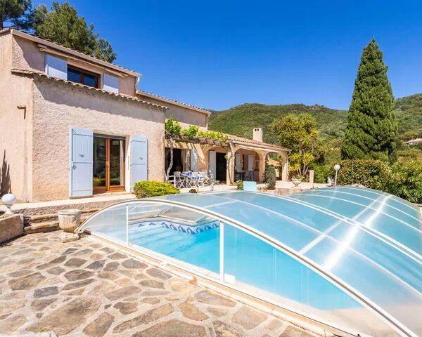 De villa "Maison de l'Hubac Bleu" ligt in de rustige heuvels van Cavalière aan de Franse Rivièra, op ongeveer 1,5 km van de zee. Dit charmante, in 1985 gebouwde villa met 2 verdiepingen staat op een rustige, zuidelijk georiënteerde helling op een natuurlijk perceel van 1.000 m². Het meest opvallende kenmerk van de villa is het hoekige privézwembad van 11 x 5 meter met een diepte van 80 tot 200 cm. De tuin rond het pand behoudt zijn natuurlijke karakter en biedt een authentieke, ongerepte buitenomgeving.
