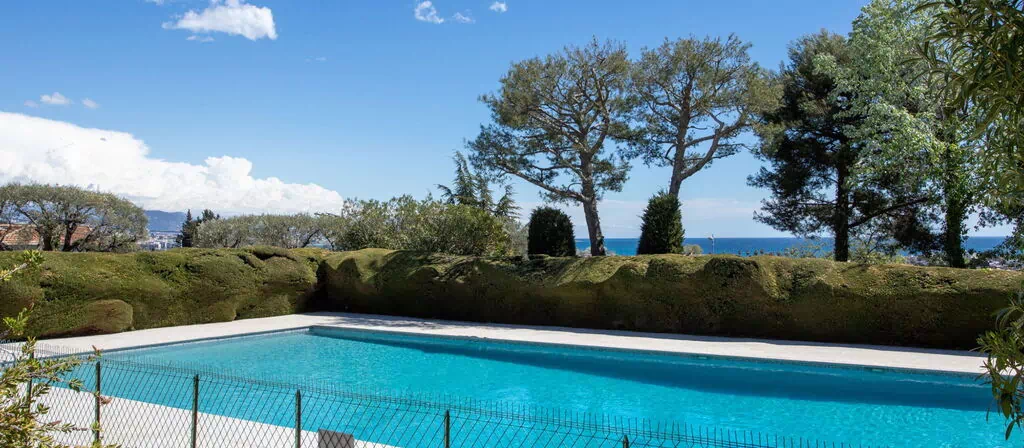 Het omheinde gemeenschappelijk park rond het complex creëert een vredige en besloten sfeer. Het gemeenschappelijk zwembad met hoekige vorm is beschikbaar van 15 mei tot 30 september en dient als centraal verzamelpunt voor ontspanning tijdens het zomerseizoen. Een gemeenschappelijk tennisplein staat ter beschikking voor gasten die van buitenrecreatie houden. Het gemeenschappelijk terras binnen het complex biedt een uitnodigende buitenruimte waar gasten kunnen ontspannen, buiten eten of genieten van de warme zuidfranse lucht. De verhoogde ligging van het pand zorgt ervoor dat de buitenruimtes profiteren van uitzonderlijk licht en een gevoel van openheid dat kenmerkend is voor de Côte d'Azur.