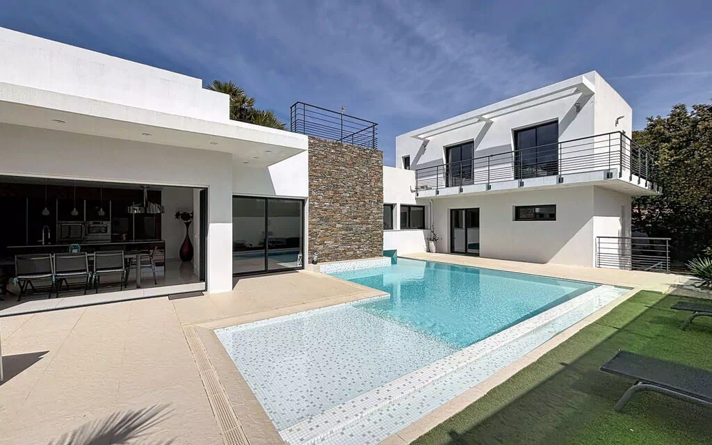 Villa 5-kamers 250 m2 op 2 verdiepingen. Zeer modern en gezellig ingericht: groot woon-/eetkamer met panoramavenster met TV (Flatscreen TV), elektrische rolluiken. Uitgang naar het zwembad. 1 groot kamer met panoramavenster Kleedkamer met 1 2-pers bed (1 x 160 cm, lengte 200 cm), bad/douche/WC, dubbele wastafels en TV (Flatscreen TV), elektrische rolluiken. Uitgang naar het terras. Open keuken (oven, afwasmachine, 4 inductiekookplaten, broodrooster, waterkoker, magnetron, diepvriezer, elektrische koffiemachine, pads voor de koffiemachine (Nespresso) extra, kookeiland). Aparte WC. Air-conditioning. Bovenverdieping: 1 kamer met panoramavenster met 1 2-pers bed (1 x 160 cm, lengte 200 cm), TV (Flatscreen TV), elektrische rolluiken. Uitgang naar het terras. 1 kamer met panoramavenster met 1 2-pers bed (1 x 140 cm, lengte 200 cm), TV (Flatscreen TV), elektrische rolluiken. Uitgang naar het terras. 1 kamer met 1 2-pers bed (1 x 140 cm, lengte 200 cm), TV (Flatscreen TV). Badkamer, aparte WC, dubbele wastafels. Air-conditioning. Groot terras gedeeltelijk overdekt. Terrasmeubelen, barbecue, ligstoelen (8). Ter beschikking: wasmachine, strijkijzer, haardroger. Internet (Internet (WiFi), gratis). Parkeerplaats, garage. Rookmelders. Aanbod door een particulier volgens art. 155, IV van CGI. MHFIFJ