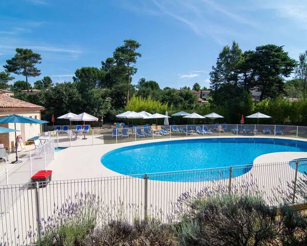 De privétuin van 1.000 m2 is zorgvuldig onderhouden en biedt ruimte voor wandelingen, buitendinen en ontspanning in een groene omgeving. Het privézwembad meet 10 x 5 meter met een diepte van 50 tot 190 cm, is voorzien van een beschermende schuifdekking en is beschikbaar van 1 juni tot 12 oktober. Op het landgoed is ook een gemeenschappelijk vrij vormig zwembad toegankelijk van 1 mei tot 1 oktober. De gedeelde buitenvoorzieningen omvatten 2 hardcourt tennisbanen, een tafeltennis speelruimte en een bocciabaan, die activiteiten voor gasten van alle leeftijden bieden.
