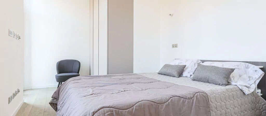 Appartement 2-kamers 40 m2 op de 4e verdieping. Ruim, volledig gerenoveerd in 2022, mooi en modern ingericht: groot woon-/eetkamer met 1 divanbed (90 cm, lengte 190 cm), TV (Flatscreen TV), air-conditioning. Uitgang naar het balkon. 1 kamer met 1 2-pers bed (140 cm, lengte 190 cm), air-conditioning. Uitgang naar het balkon. Open keuken in de hal (2-pits kookplaat, oven, broodrooster, waterkoker, elektrische koffiemachine). Badkamer, douche/WC. Verwarming, air-conditioning. 2 kleine balkons 2 m2, op het westen gelegen. Ter beschikking: wasmachine, strijkijzer, haardroger. Internet (Internet (WiFi), gratis). Rookmelders, geen lift. Aanbod door een particulier volgens art. 155, IV van CGI. US0608823S0901