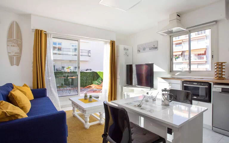 Appartement 2-kamers 40 m2 op de 3e verdieping, op het westen gelegen. Comfortabel ingericht: woon-/eetkamer met 1 2-pers divanbed (1 x 140 cm, lengte 190 cm), TV (Flatscreen TV). Uitgang naar het terras. 1 kamer met 1 2-pers bed (1 x 140 cm, lengte 190 cm). Open keuken (oven, afwasmachine, 3 keramische glas kookplaten, broodrooster, waterkoker, magnetron, elektrische koffiemachine). Uitgang naar het terras. Douche/WC, hydromassage douche. Verwarming, air-conditioning. Groot terras 15 m2, op het westen gelegen. Terrasmeubelen. Beperkt uitzicht op zee. Ter beschikking: wasmachine, strijkijzer, haardroger. Internet (WiFi). Parkeerplaats (1 Auto). Rookvrij huis. Maximaal 1 huisdier/hond toegestaan. Aanbod door een particulier volgens art. 155, IV van CGI. 06027030447MX