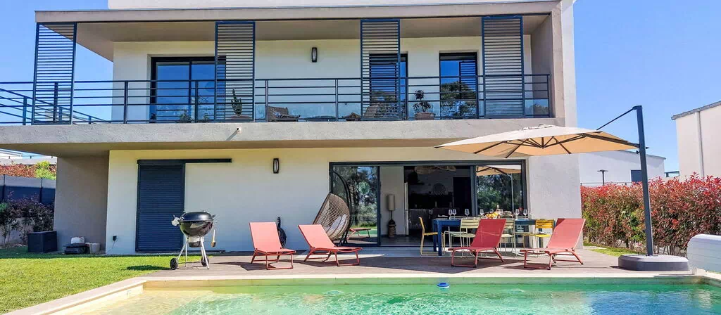 La Roquette sur Siagne 10 km van Cannes: Zeer moderne, mooi villa "Villa La Roquette sur Siagne", van 2 verdiepingen, vrijstaand, bouwjaar 2023. Villa wijk. Voor alleengebruik: verzorgde tuin 400 m2 (omheind), openluchtzwembad verwarmd (8 x 4 m, 120 - 150 cm diepte, seizoensgebonden beschikbaarheid: 01.Mei. - 30.Sep.) met oprolbaar afdekscherm. In het huis: alarmsysteem. Parkeerplaats (voor 3 auto's). Winkel, restaurant 500 m, bushalte 600 m, zandstrand "Plage du Midi" 7 km. Jachthaven 10 km, golfterrein (18 holes) 5 km. Attracties in de buurt: Cannes 10 km, Grasse 10 km, Nice 35 km. Wandelgebied Tanneron 6 km. De eigenaar accepteert geen jeugdgroepen. Een deel van het huis is afgesloten en niet bezet. Gesloten residentie met een elektrische deur. De omgeving is gevoelig voor geluidsoverlast. Gelieve geen lawaai te maken en de rust te bewaren.