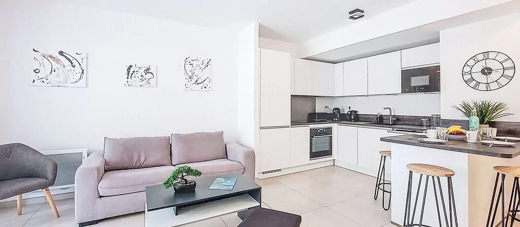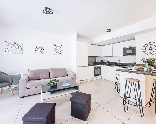 Appartement 2-kamers 41 m2, op verhoogde begane grond. Licht, comfortabel en mooi ingericht: woon-/eetkamer met 1 divanbed (140 cm, lengte 190 cm), TV (Flatscreen TV). Uitgang naar het terras. 1 kamer met 1 2-pers bed (140 cm, lengte 200 cm), TV. Uitgang naar de tuin. Open keuken (oven, afwasmachine, 3 inductiekookplaten, broodrooster, waterkoker, diepvriezer, elektrische koffiemachine, pads voor de koffiemachine (Nespresso) extra). Douche, aparte WC. Elektrische verwarming. Terras 13 m2, tuin 34 m2. Terrasmeubelen. Ter beschikking: wasmachine. Internet (WiFi, extra). Parkeerplaats nr. 18 (overdekt, 1 Auto). Niet rokers woning. TV alleen FR. Rookmelders. Aanbod door een particulier volgens art. 155, IV van CGI. 83112001752EZ