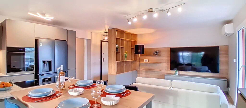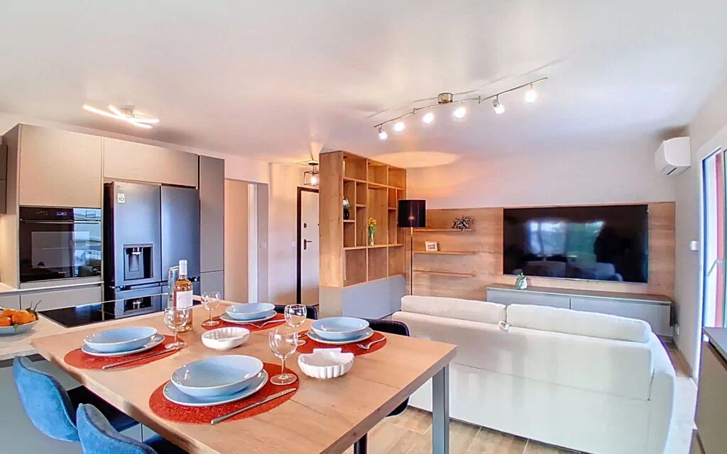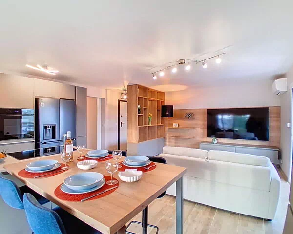 "l'Astrolabe", appartement 2-kamers 50 m2 op de 4e verdieping, op het zuidwesten gelegen. Ruim en licht, comfortabel en modern ingericht: woon-/eetkamer met 1 2-pers divanbed (1 x 140 cm, lengte 200 cm), TV (Flatscreen TV), air-conditioning en elektrische rolluiken. Uitgang naar het balkon, naar de loggia. 1 kamer met 1 bed (160 cm, lengte 200 cm). Uitgang naar het balkon. Open keuken (oven, afwasmachine, 3 inductiekookplaten, broodrooster, waterkoker, magnetron, diepvriezer, elektrische koffiemachine, pads voor de koffiemachine (NESPRESSO) extra) met eettafel. Douche, aparte WC. Verwarming, air-conditioning. Klein balkon 4 m2, op het zuiden gelegen. Balkonmeubilair. Uitzicht op de plaats. Ter beschikking: wasmachine, strijkijzer, haardroger. Internet (WiFi, gratis). Garage nr. 34. Niet rokers woning. Rookmelders. Aanbod door een particulier volgens art. 155, IV van CGI. 06027040124HT