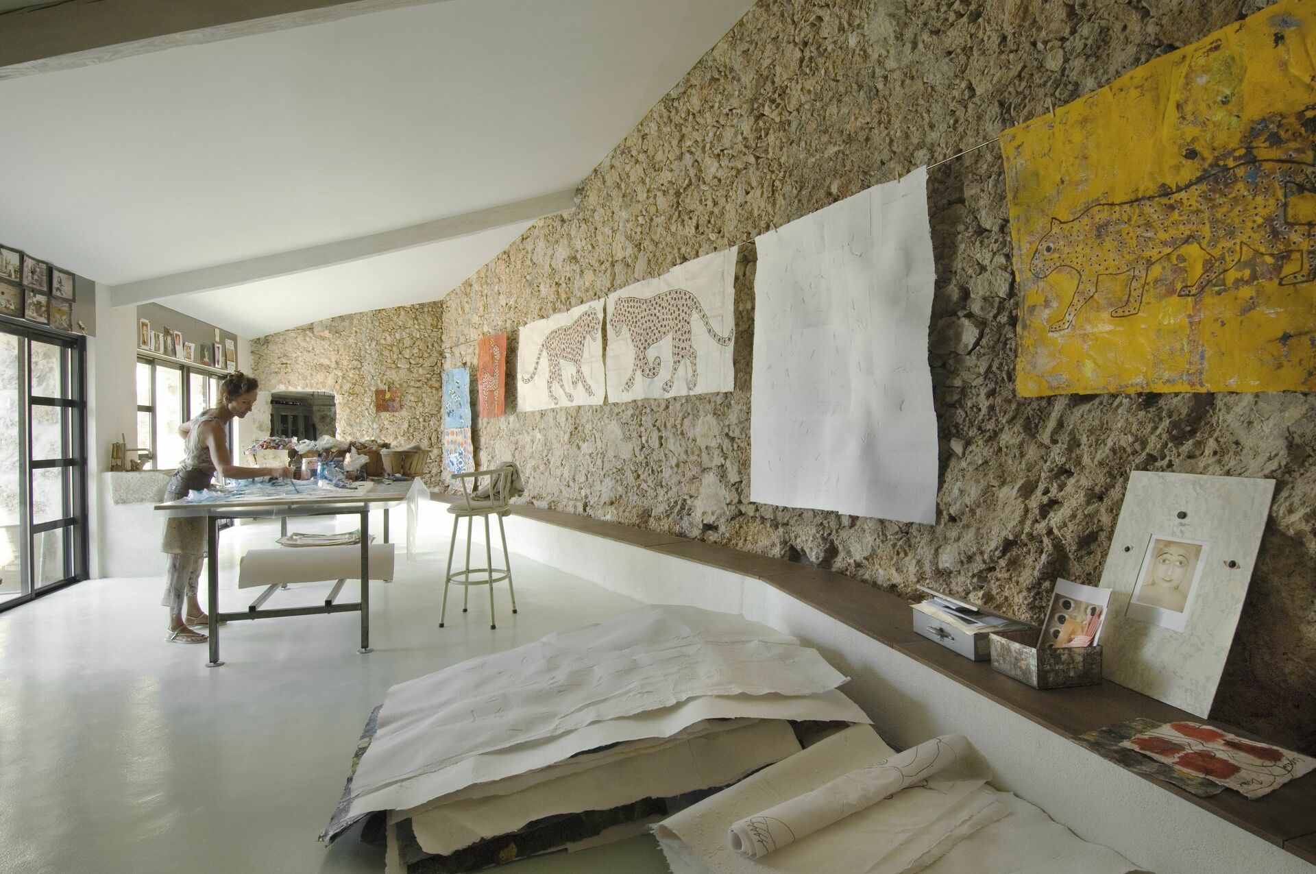 Ground floor: Large living room / atelier which leads to a section with double bed and access to the terrace, a well equipped kitchen with dining area, bedroom with double sofa bed and ensuite bathroom with jaccuzi, separate toilet.