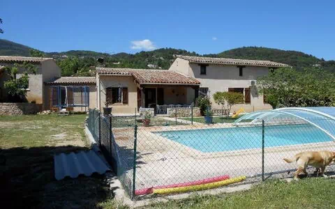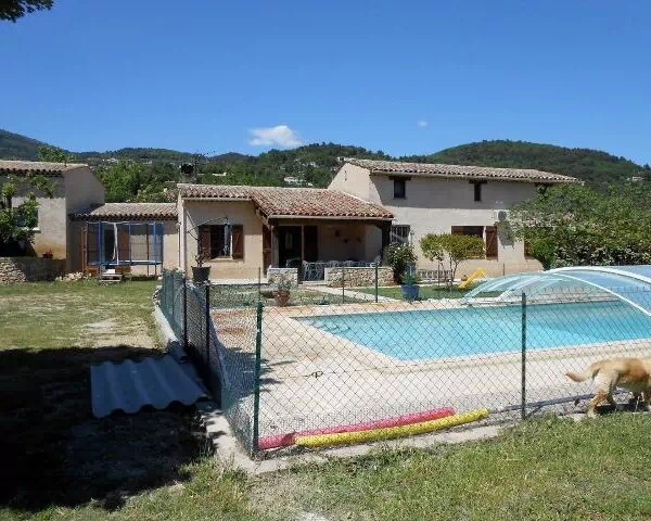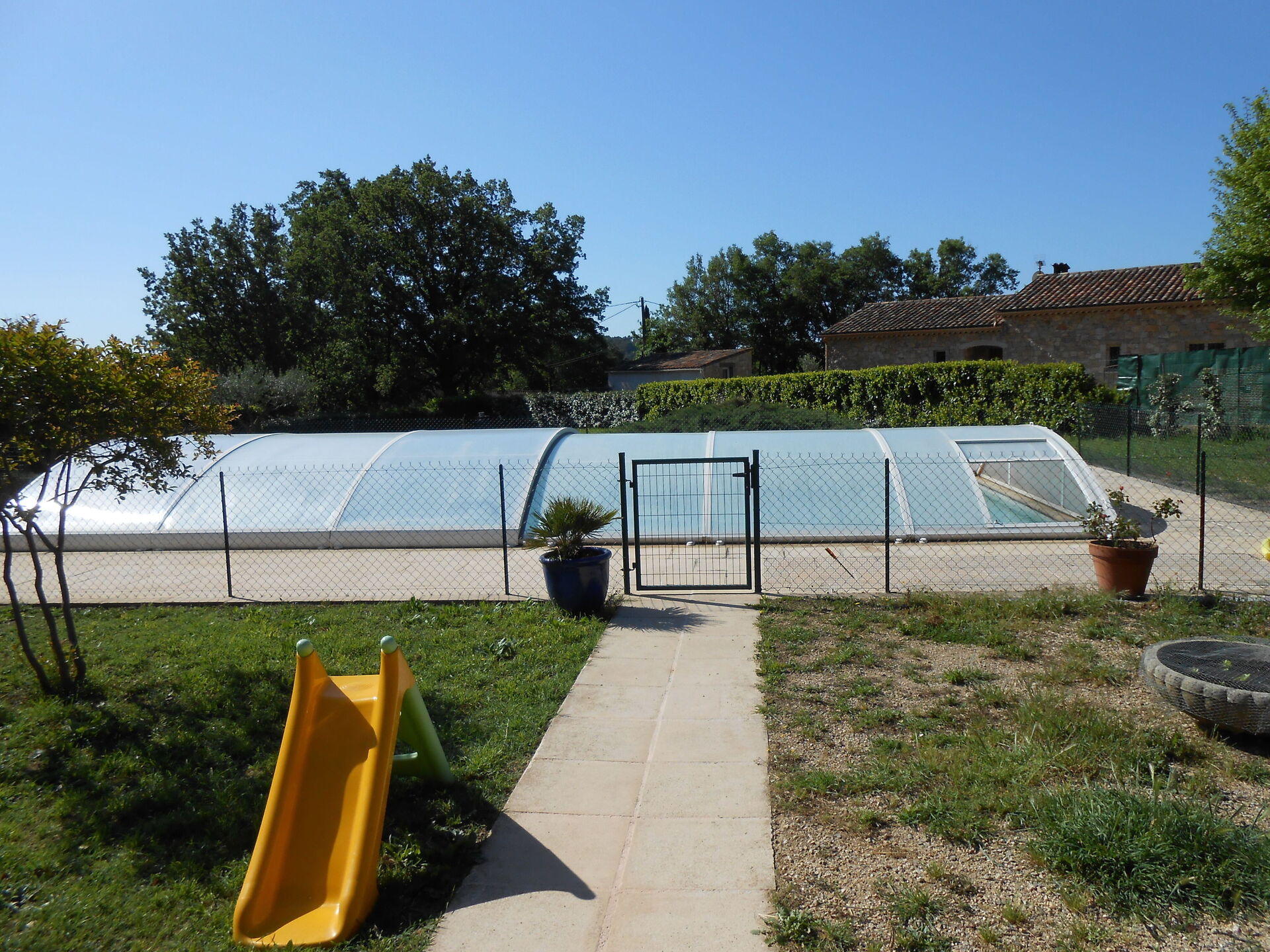 Beautiful 2 bedroom holiday house of 100 m2 for 4 persons with large swimming pool for rent in Seillans in the Var. The house is located on a plot of 1500m2 only 5 minutes from the village of Seillans. This house is semi-detached. The owner lives in a part of the house, but the rental part has a private entry. The pool and a large part of the garden is reserved for the tenants. The house is in 2 floors with a partly covered pool.
