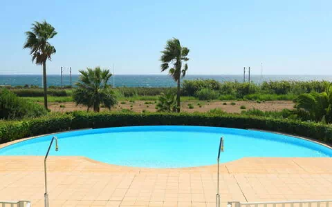 The outdoor spaces at Residence "Le Grand Large" are thoughtfully designed to complement the surrounding Mediterranean environment. The shared garden is well-kept and offers a welcoming green setting where you can relax and enjoy the natural beauty of the area. The round swimming pool, open seasonally from 1 June to 30 September, serves as a central feature of the outdoor space, perfect for leisurely swims under the warm Riviera sun. With the beach located just 100 metres away and direct beach access available, the outdoor experience extends naturally beyond the residence itself, inviting you to make the most of the sandy shoreline right at your doorstep.