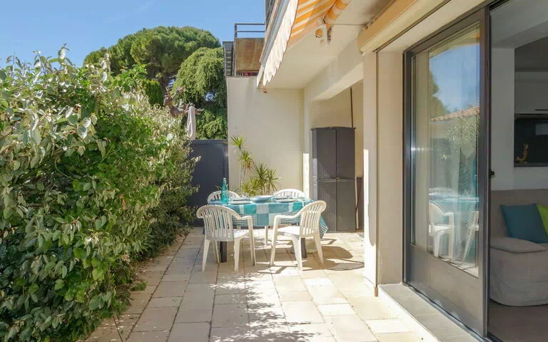 2-room apartment 42 m2, on the ground floor. Comfortable and beautiful furnishings: living/dining room with 1 double sofabed (140 cm, length 190 cm), TV. Exit to the terrace. 1 room with 1 french bed (140 cm, length 190 cm). Open kitchen (oven, dishwasher, 2 induction hot plates, microwave, freezer, electric coffee machine). Shower/WC. Electric heating. Terrace 70 m2, south-east facing position. Terrace furniture, electric barbecue. Facilities: washing machine, iron. Internet (WiFi, extra). Reserved parking space n 5. Please note: TV only FR. Smoke alarm.