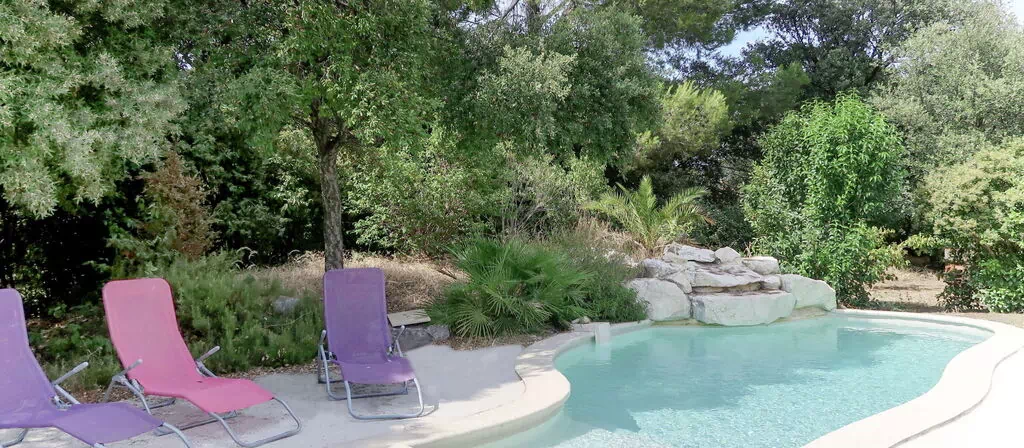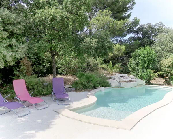 Pool (private use): 6.0 x 4.0 m, 1.20 - 1.60 m deep, open throughout the entire season, secured by alarm system, curved shape, pool maintenance 1 time(s) per week. Pool area: 3 deck chairs, 2 sun loungers.
