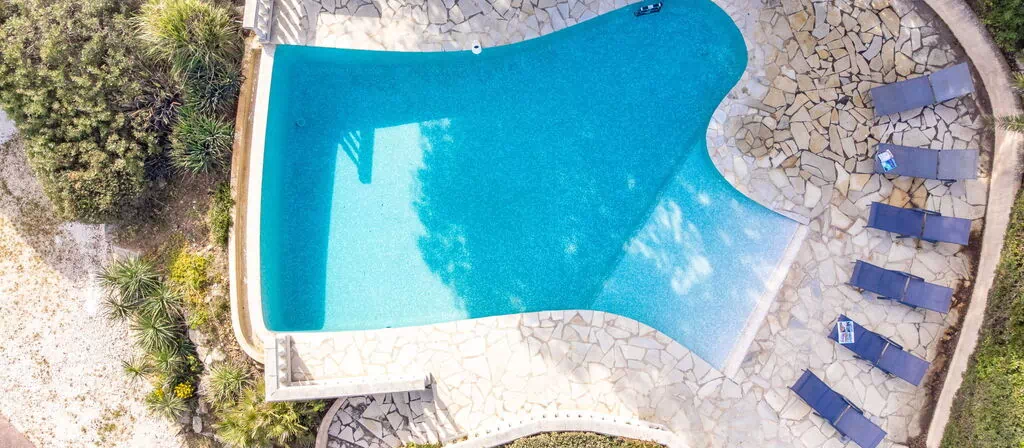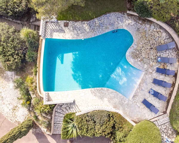 The outdoor spaces of "L'Escarpe des Arbousiers" are truly one of its most remarkable features, inviting you to make the most of the Mediterranean climate in complete privacy. The expansive fenced garden of 1,800 m2 is home to a diverse wildlife garden and a variety of mature trees that provide natural shade and a sense of tranquillity. The private swimming pool, with its distinctive unconventional shape and generous dimensions of 10 x 8 m, is available seasonally from 15 March to 15 November, offering ample space for swimming and leisurely relaxation. A well-appointed terrace of 25 m2 provides an ideal setting for outdoor dining and entertaining, while a boules court adds a charming and quintessentially French recreational touch to the exterior grounds.