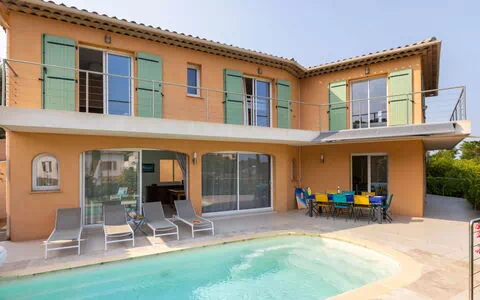 This impressive detached villa "Plein Sud" offers a luxurious vacation rental experience nestled in a residential district near Saint Aygulf, just 9 km from Fréjus, France. The property boasts a sprawling 1,700 m2 of fenced land with a stunning wildlife garden, providing a serene retreat. Enjoy the convenience of on-premises parking for two cars and a roofed area. The villa includes a swimming pool with a shutter cover and salt-electrolysis pool-cleaning system, perfect for refreshing dips during the seasonal availability from April 1st to October 30th. Indoors, you can unwind with a game of billiards on the provided table. With Internet WiFi, a yard, and parking facilities, this villa offers all the amenities for a comfortable stay.