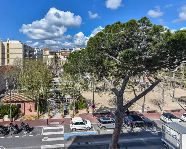The outdoor surroundings of "La Brise" reflect the natural beauty and Mediterranean charm that define the Palm Beach district. The property sits just 100 m from the sandy beach, allowing you to step outside and reach the shoreline within moments. The immediate environment offers a relaxed coastal atmosphere, with the gentle proximity of the sea enhancing the overall ambiance of your stay. The open setting of the building and its road-side location provide a pleasant outdoor experience, perfectly complementing the sun-drenched lifestyle that the Cannes coastline is renowned for.