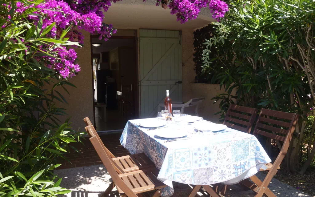 3-room apartment 47 m2 on 2 levels, on the ground floor. Comfortable and beautiful furnishings: living/dining room with 1 sofabed (160 cm, length 190 cm), TV. Exit to the terrace. Open kitchen (oven, 4 ceramic glass hob hotplates, toaster, kettle, microwave, freezer, electric coffee machine). Upper floor: 1 room with 1 french bed (160 cm, length 200 cm). Exit to the balcony. 1 room with 1 bed (80 cm, length 190 cm). Shower/WC. Electric heating. Balcony 5 m2, terrace 15 m2 partly roofed, west facing position. Terrace furniture. Facilities: washing machine, iron. Internet (WiFi, free). Reserved parking space n 12. Please note: non-smokers only. Maximum 1 pet/ dog allowed. TV only FR. Smoke alarm. 83123000331ZD