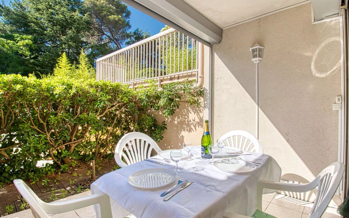 1-room studio 25 m2, on the ground floor. Renovated in 2021: living/dining room with 1 double sofabed (1 x 140 cm, length 190 cm), TV (flat screen). Exit to the terrace. Alcove with 1 double fold-away bed (1 x 140 cm, length 190 cm). Kitchenette (2 hot plates, mini-oven, oven, microwave, electric coffee machine, Capsules for coffee machine (Senséo) extra). Shower, sep. WC. Terrace. Terrace furniture. Facilities: washing machine. Internet (WiFi, extra). Reserved parking space n 252 (roofed), height 180 cm. Please note: non-smokers only. TV only FR. Smoke alarm. Offer by a private individual according to Art. 155, IV of CGI.