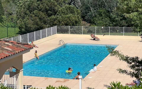 Large residence "Cannes Grand Parc", 2 storeys. In the district of Croix des Gardes, in a quiet position in the residential district, 2.7 km from the sea, 2.7 km from the beach. For shared use: park, 2 swimming pools angular (8 x 15 m, seasonal availability: 15.May. - 30.Sep.). In the complex: lift. Shop, grocery, restaurant, bar, bakery 300 m, bus stop 100 m, sandy beach "Des sports" 2.7 km. Sports harbour 3.4 km. Nearby attractions: Palais des Festivals 3.4 km, Le Suquet 2.9 km, Vieil Antibes 14 km, Nice 33 km. Please note: car recommended. The keys‘ handover takes place by the agency INTERHOME in CANNES, 6 km.