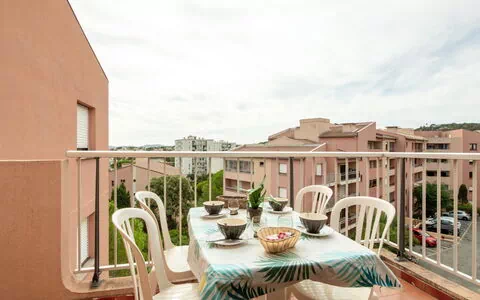 Nestled on the outskirts of Sainte-Maxime, in the heart of the French Riviera in France, the residence "Les Pins Ensoleilles" offers a refined and comfortable holiday rental experience within a well-appointed 4-storey building. Situated just 1 km from the town centre and 1 km from the sea, this property combines a peaceful residential setting with easy access to the vibrant surroundings of one of the most sought-after destinations on the Côte d'Azur. The residence is equipped with a lift, ensuring convenient access across all floors. Guests benefit from parking on-site, available within the complex, though spaces are limited in number and subject to availability. Wireless internet connection is available, allowing you to stay connected throughout your stay.