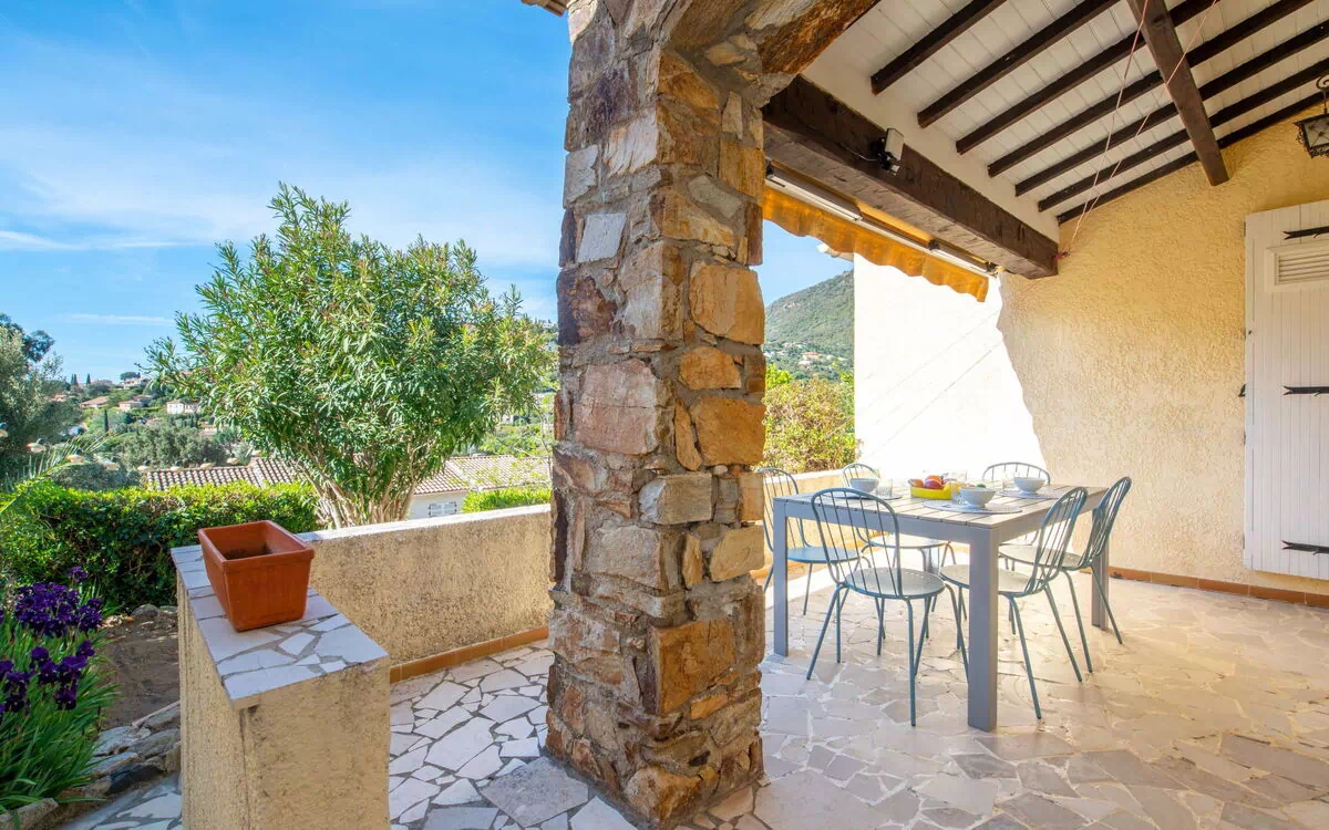 Le Mazet is a small terraced house offering a yard, internet WiFi, and parking. It comprises a main house and an outbuilding, situated in the Les Hauts De Cavalaire district, approximately 2 km from the center of Cavalaire-sur-mer, France. The property enjoys a quiet position in a cul-de-sac, about 2 km from the sea.
