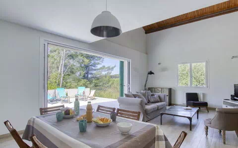Discover a vacation rental surrounded by nature, Villa "la familiale". This two-story property is nestled in a serene, sunny, and elevated location atop a hill in the residential district, just 3 km from the sea. Bask in the tranquility of the private 5'500 m2 natural state property, complete with parking for up to 4 cars. Enjoy the convenience of a shop within 3 km, a supermarket just 4 km away, and the "Gare de Saint Cyr sur Mer" railway station only 5 km from your doorstep, ensuring easy access to your holiday rental.