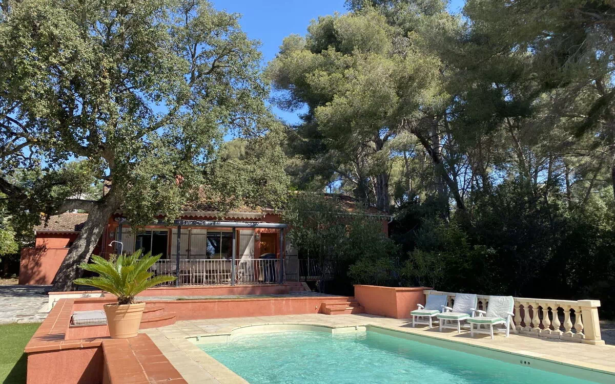 The villa is suitable for families and non-smokers only. A maximum of one small pet or dog is allowed. Please note that the TV channels are only available in French. For your safety, a smoke alarm is installed in the villa. This offer is presented by a private individual according to Art. 155, IV of CGI. 83071000757AO. You can enjoy the view of the swimming pool from the villa, just an example of the amenities available.