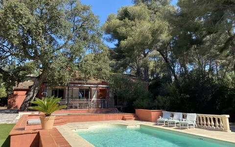 Situated in La Londe-les-maures, France, the villa "Lou Clapas" offers a tranquil escape amidst trees and vineyards. This vacation rental boasts a well-kept garden (fenced), a swimming pool with a shutter cover, and ample parking for 4 cars. Enjoy the convenience of a private outdoor shower, table tennis, and boules facilities within the property's fenced 1'200 m2 area. You can also take advantage of the Internet Wifi access.