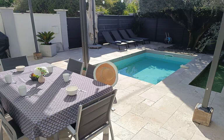 Villa Clem is a charming single-family house spanning two storeys, recently renovated in 2022 to provide modern comfort in Saint-Raphaël, France. This holiday rental is situated in the centre of Saint-Raphaël, offering a peaceful location in a quiet cul-de-sac while being conveniently positioned just 1.1 km from the sea. The property features a private, well-kept fenced garden spanning 80 m2, complete with an angular swimming pool measuring 4 x 3 m (12 m2) equipped with an alarm system for your safety, available seasonally from 01.Jun. through 01.Sep. You will find a comfortable terrace furnished with garden furniture, perfect for outdoor relaxation. The property provides convenient Internet WiFi connectivity and dedicated parking facilities for your vehicle. The owner does not accept any youth groups.