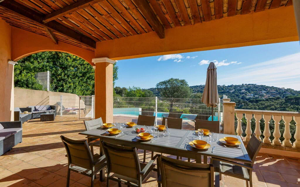 Villa "La Figuière" is located in the distinguished Domaine du Golf district, positioned 3.5 km from the centre of Sainte-Maxime, France. This elegant holiday rental sits on a slope within a peaceful residential area comprised of villas, offering convenient access just 2.5 km from both the sea and beach. The property features a private swimming pool measuring 9 x 3 metres with depths ranging from 100 to 180 cm, available seasonally from 01.Jun. through 31.Sep., complete with an internal staircase for easy entry. Guests will appreciate the expansive yard spanning 1,800 m2, which is fully fenced and includes a terraced garden with a wildlife garden area. Internet WiFi connectivity ensures you remain connected throughout your stay. Parking accommodations include space for two cars on the premises, supplemented by a single garage for additional vehicle protection.