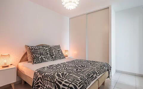 Your vacation apartment provides air conditioning throughout the accommodation, with a washing machine available for your convenience. The unit includes a dishwasher in the kitchen and television sets with flat screens in both the living room and bedroom. The maximum capacity for this apartment is 2 guests. The accommodation features 1 bedroom and 1 bathroom. You will have access to parking space n 326, which is a roofed space suitable for 1 car. Internet access via WiFi is available for an extra charge. The living room window is equipped with an air-conditioning detector, and a smoke alarm is installed for your safety.