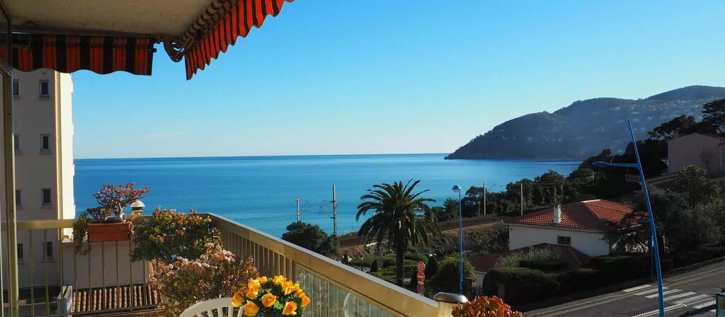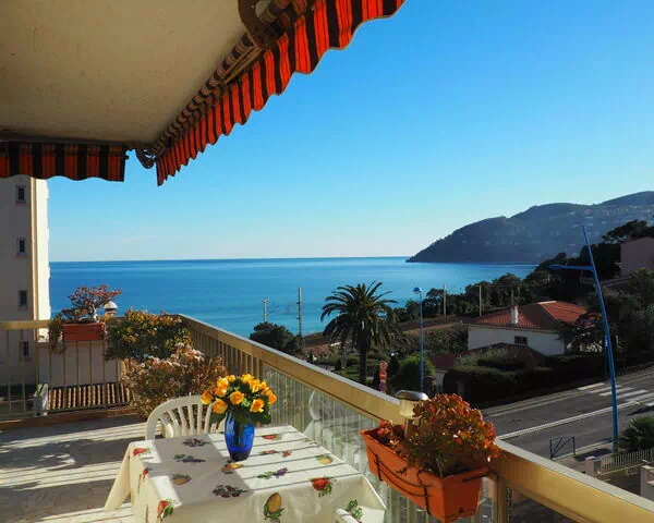 Residence Le Castellet, Nice 2 bedroom apartment for 5-6 persons located on first floor very close to the beach in La Napoule on the French Riviera. This apartment is located in a quiet estate with local French residents. The large corner terrace offers stunning views on the sea and the Esterel Mountains. The apartment has everything you need to have a good holiday and is extremely well situated - close to the sand beach, harbor, the market, restaurants, small shops, super market, bus and train.